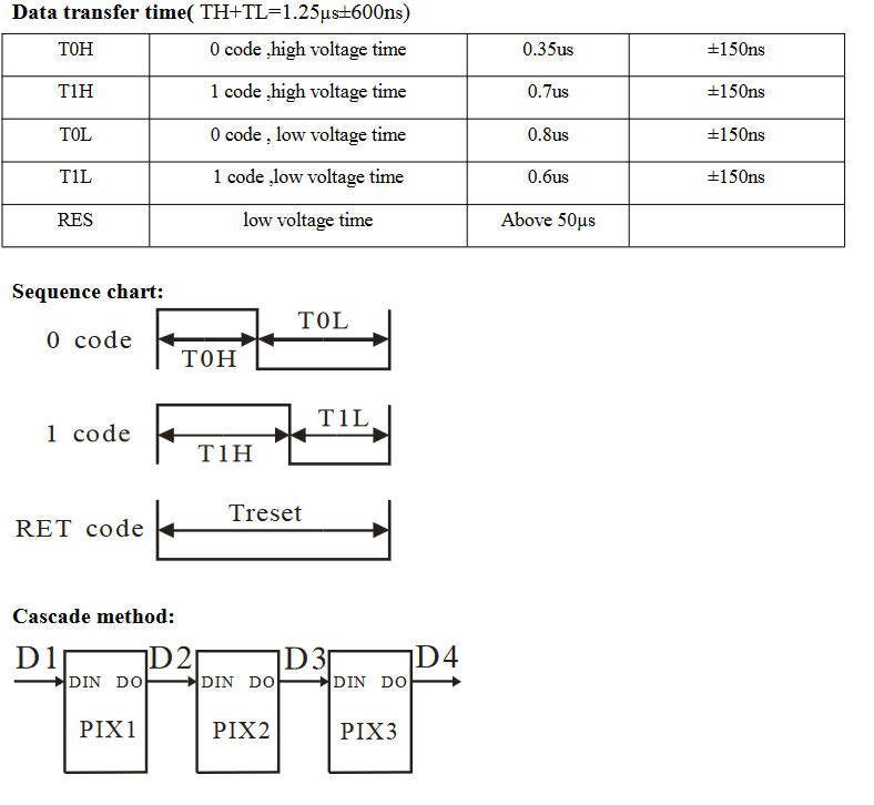 The WS2812 is a popular type of LED widely used in DIY electronics and lighting projects due to its simple control method and capability for full-color illumination. Each WS2812 unit consists of a red, green, and blue LED (RGB) and an integrated control circuit, all packaged into a single component. This integrated control circuit allows each LED to be individually addressable and controlled using a single data line, making them very efficient in terms of wiring and control complexity. Here’s a detailed look at the WS2812 protocol: